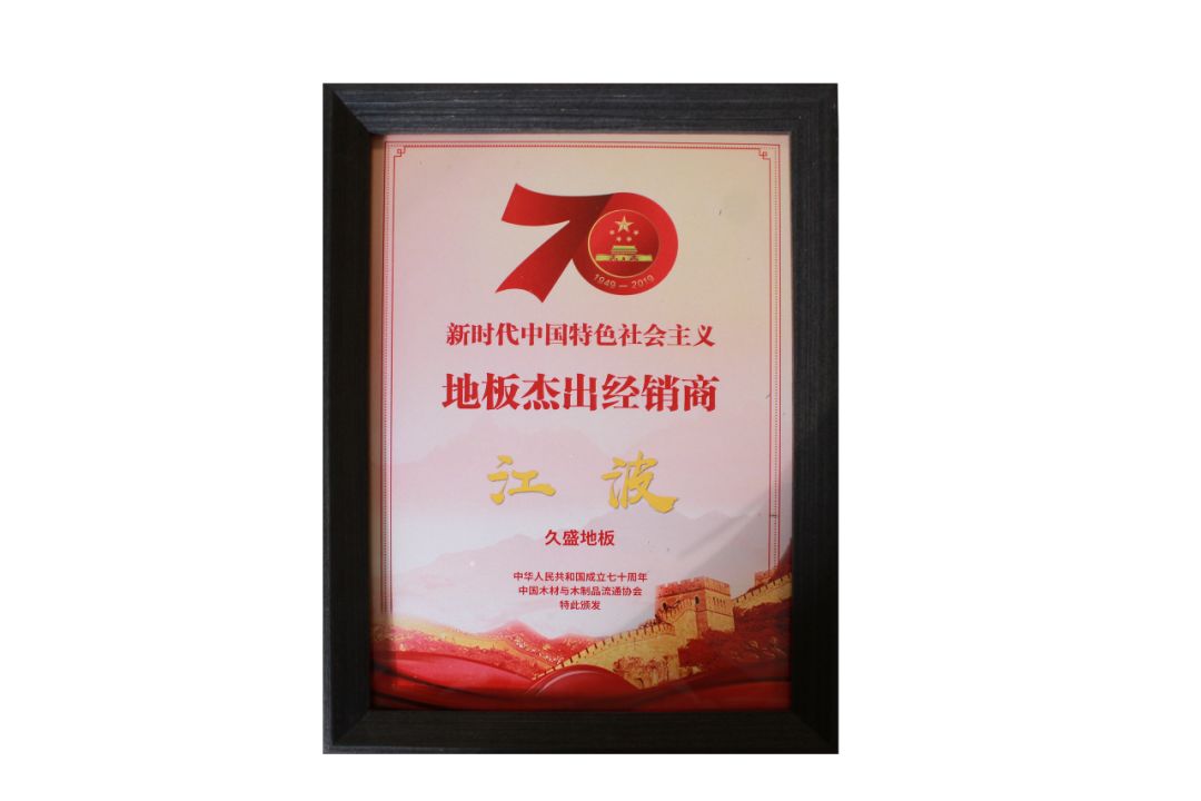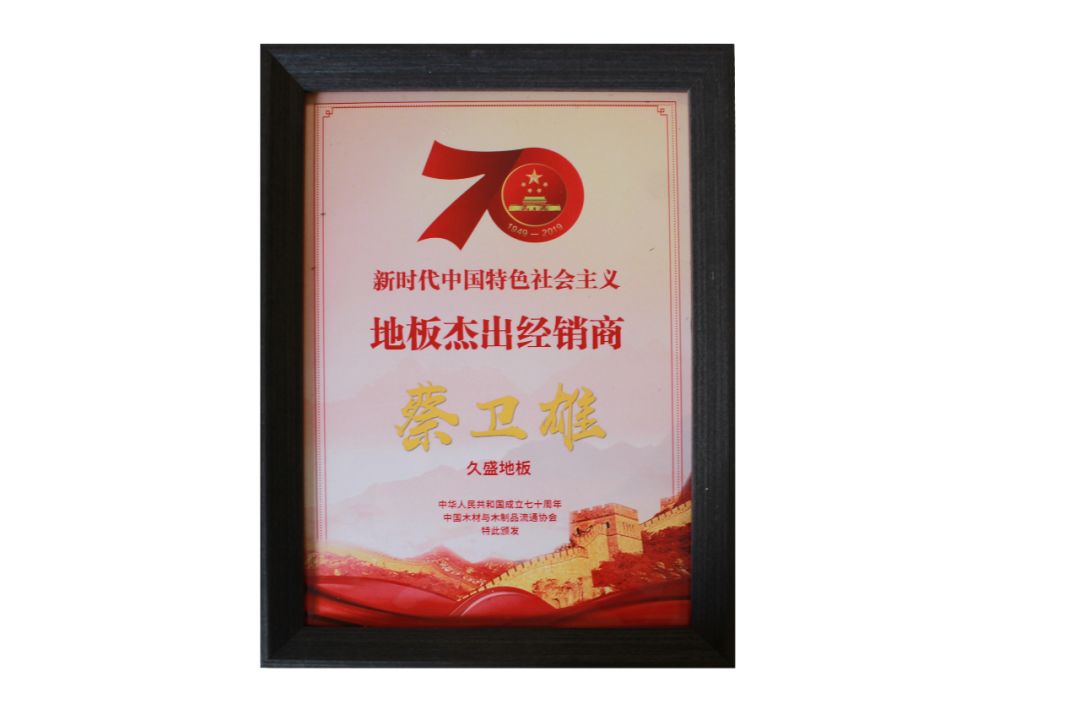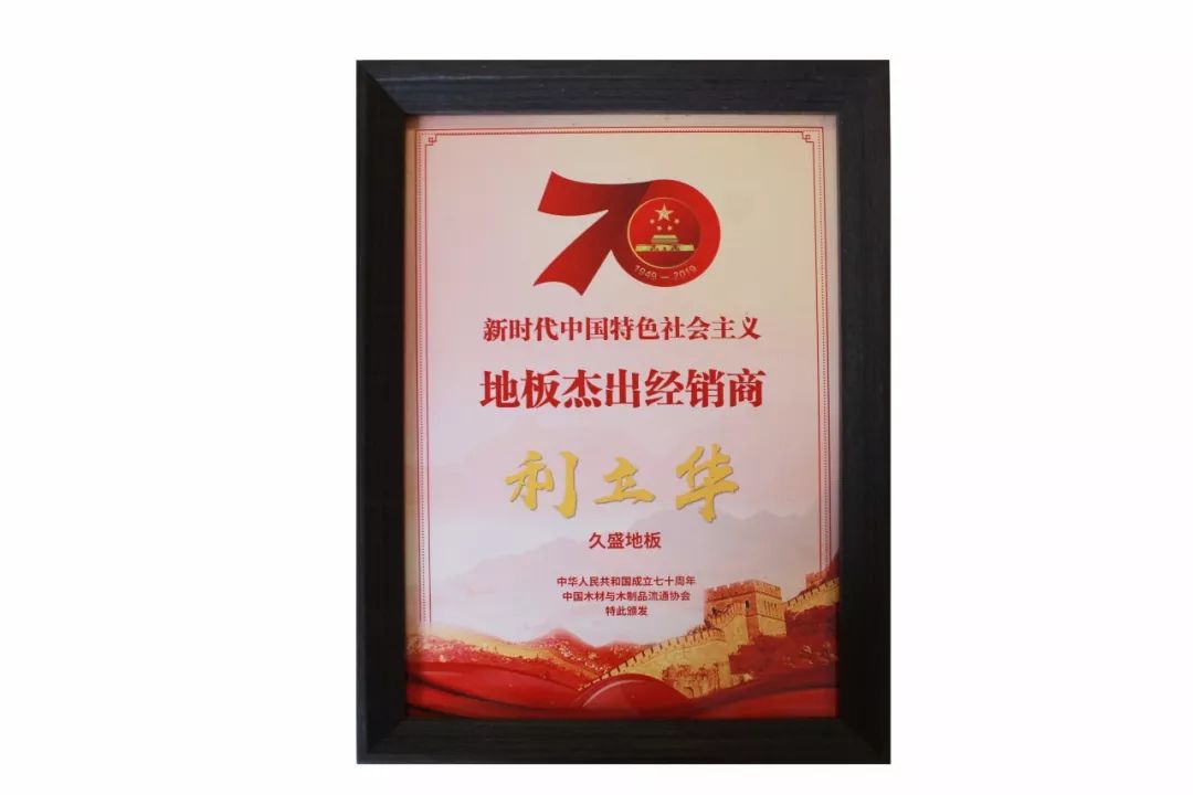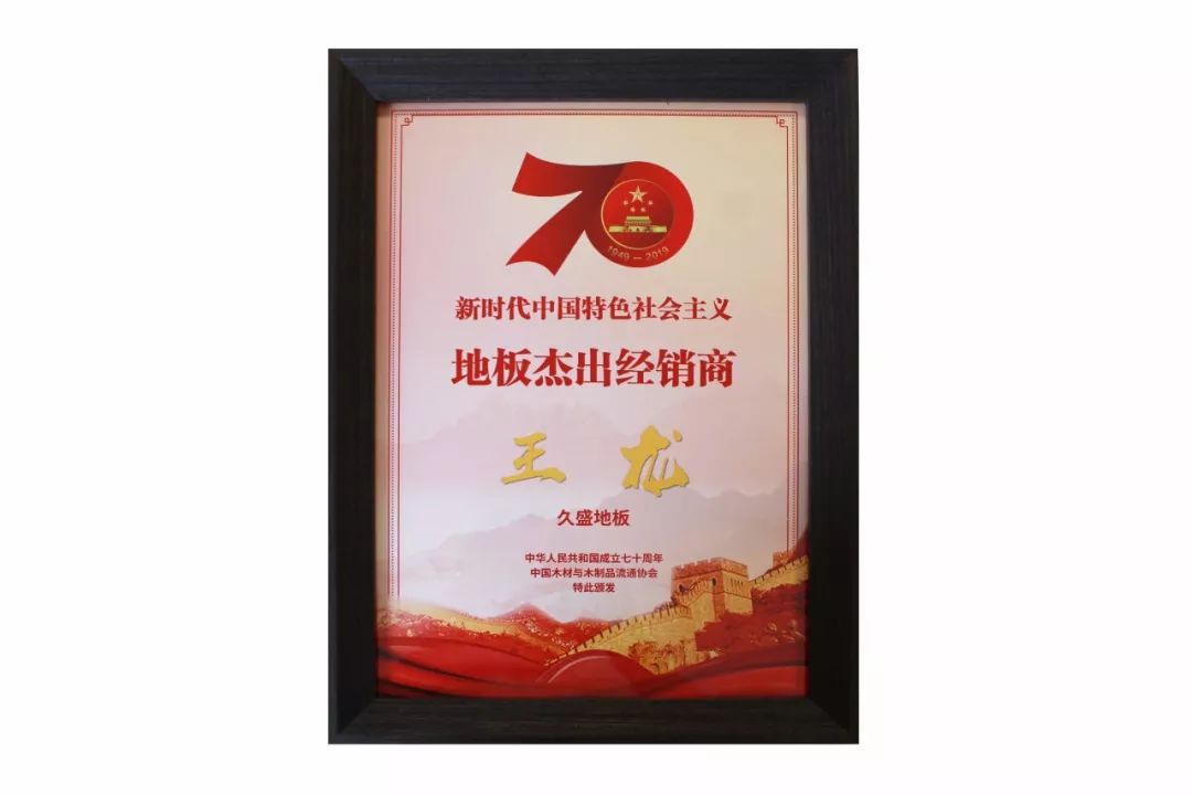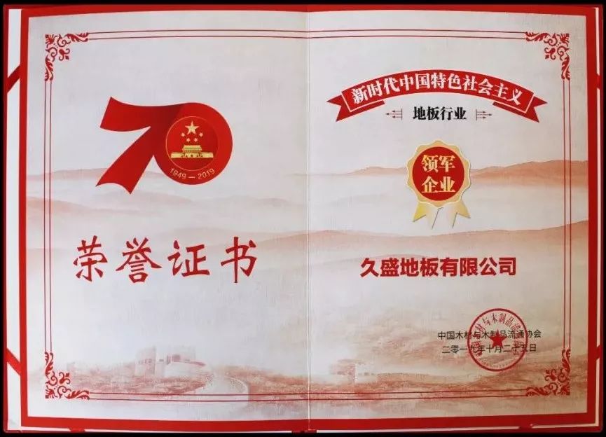 壯麗新時代七十年,專注行業十九載。在本次大會上,久盛地板榮獲由中國木材與木制品流通協會頒發的“新時代中國特色社會主義地板行業領軍企業”,該獎項旨在表彰為中國地板行業發展做出突出貢獻的企業,傳承匠心精神,樹立行業典范,號召全行業與優秀為伍,開創中國地板行業發展新局面。