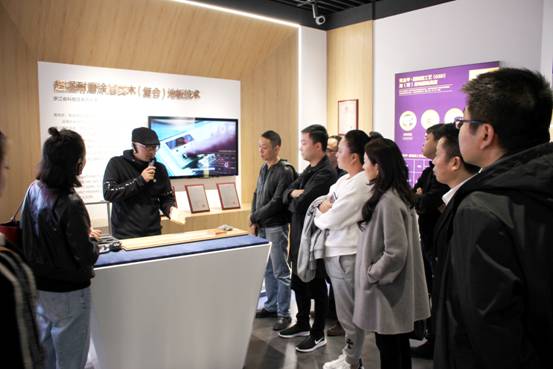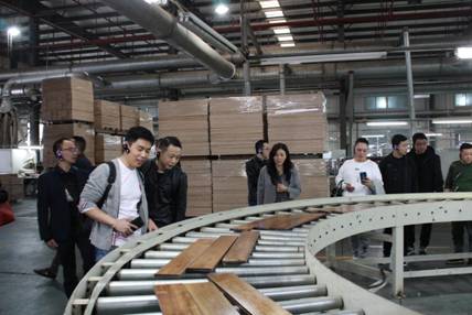 在久盛地板營銷總經理趙興才的帶領下,考察團團員們實地深入考察參觀了久盛品牌體驗館、制造工廠、物流中心和久盛研究院,并對久盛地板的行業地位、工廠規模、科技研發、質量管控等給予了極大的肯定與贊揚。