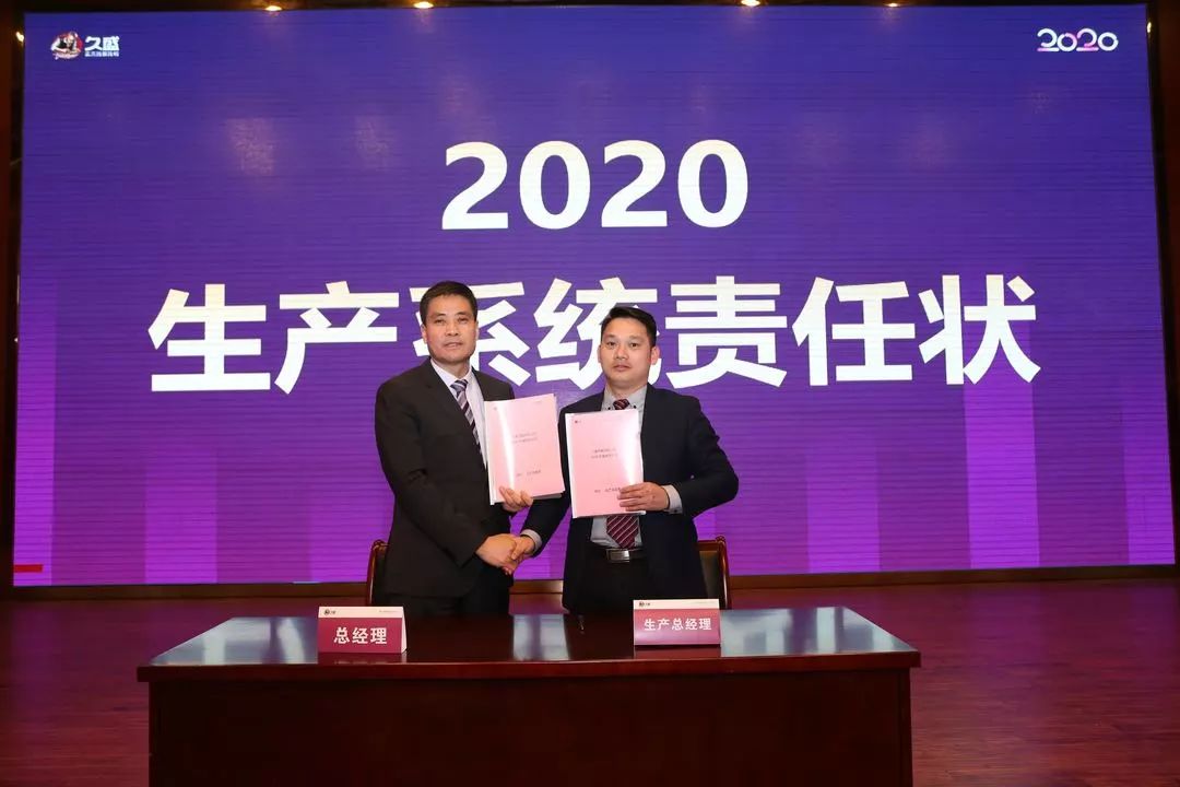 2020年中國經濟正處于巨變和轉型的關鍵發展期,企業正面臨市場變革、消費升級的關鍵時期。新形勢和新變化,讓久盛品牌更具有發展空間,這一年,將是久盛由市場品牌向消費者品牌轉變的重要一年;是推進主品類、搶占市場的關鍵一年,奠定品類領導者和主導者地位的關鍵一年;更是全面優化和提升產業鏈、制造鏈、管理鏈、營銷鏈的核心之年!久盛團隊要在這關鍵一年不斷奮進、開拓新的征程。