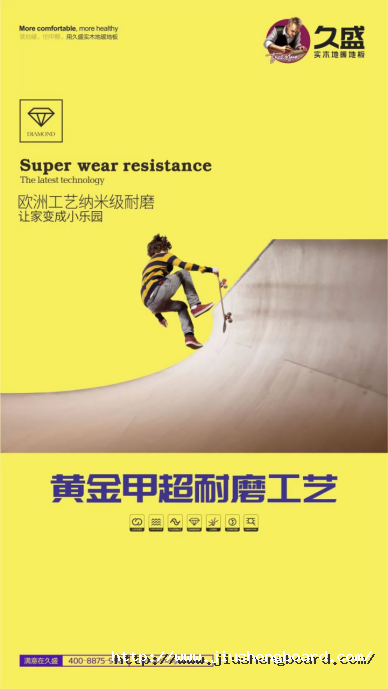 久盛地板自主創(chuàng)新 “黃金甲歐洲超耐磨工藝,超強(qiáng)耐磨,讓家變成小樂園,即便孩子想在家里滑輪滑,也能立馬答應(yīng),無需再當(dāng)只會拒絕的嚴(yán)厲父母。